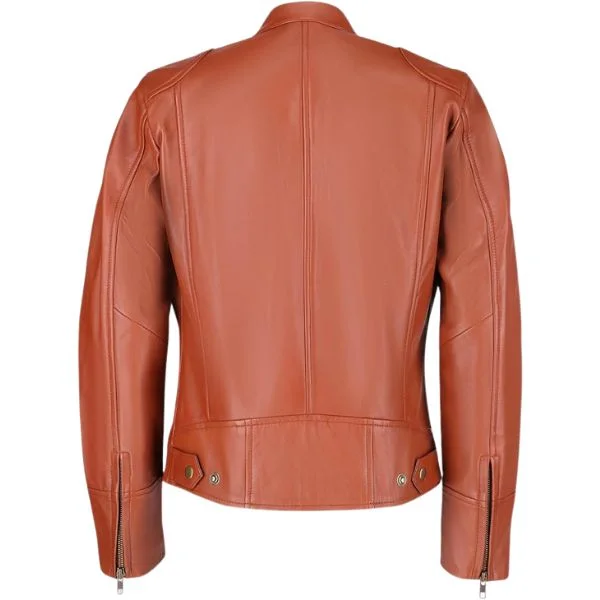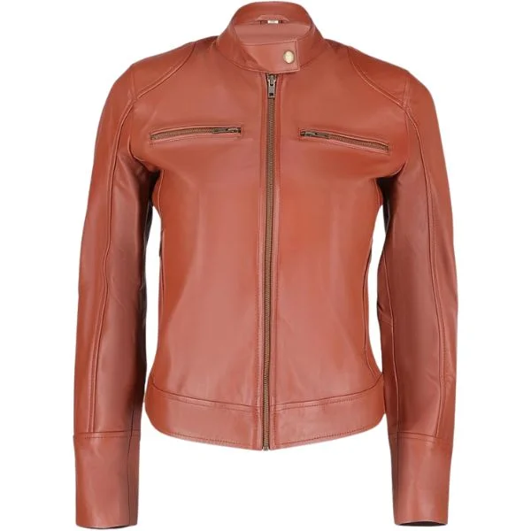 Brighten up your outerwear collection with the Warmetry Orange Women’s Leather Jacket. Made from eco-friendly faux leather in a vibrant orange hue, it offers light protection from wind, light rain, and cool temperatures. The ribbed cuffs and shaped hem help keep warmth in while enhancing the jacket’s sleek fit.